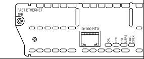 利用RJ-45端口也可以建立广域网与局域网VLAN(虚拟局域网)之间,以及与远程网络或Internet的连接。如果使用路由器为不同VLAN提供路由时,可以直接利用双绞线连接至不同的VLAN端口。但要注意这里的RJ-45端口所连接的网络一般就不太可有是10Base-T这种了,一般都是100Mbps快速以太网以上。如果必须通过光纤连接至远程网络,或连接的是其他类型的端口时,则需要借助于收发转发器才能实现彼此之间的连接。如图5所示为快速以太网(Fast Ethernet)端口。