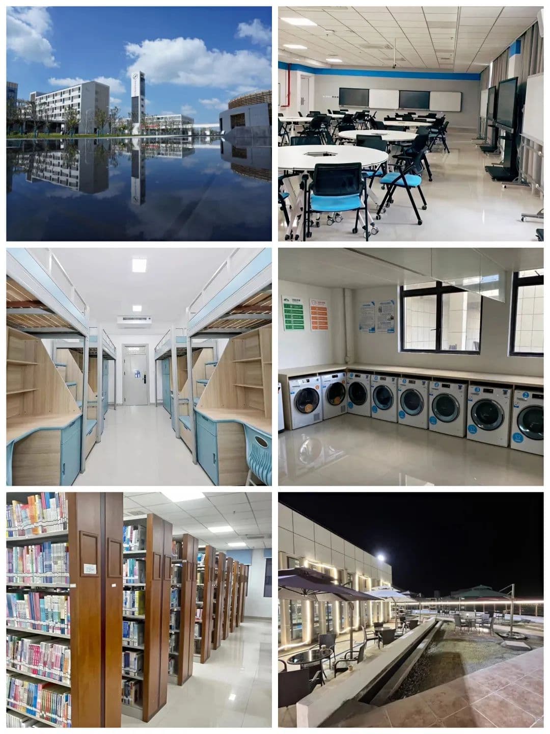 住宿条件:四人间、上床下桌、独卫独浴、配备中央空调、洗衣机、烘干机等生活便利设施。宿舍楼都有24小时学习室,学习累了可以直接回宿舍休息。