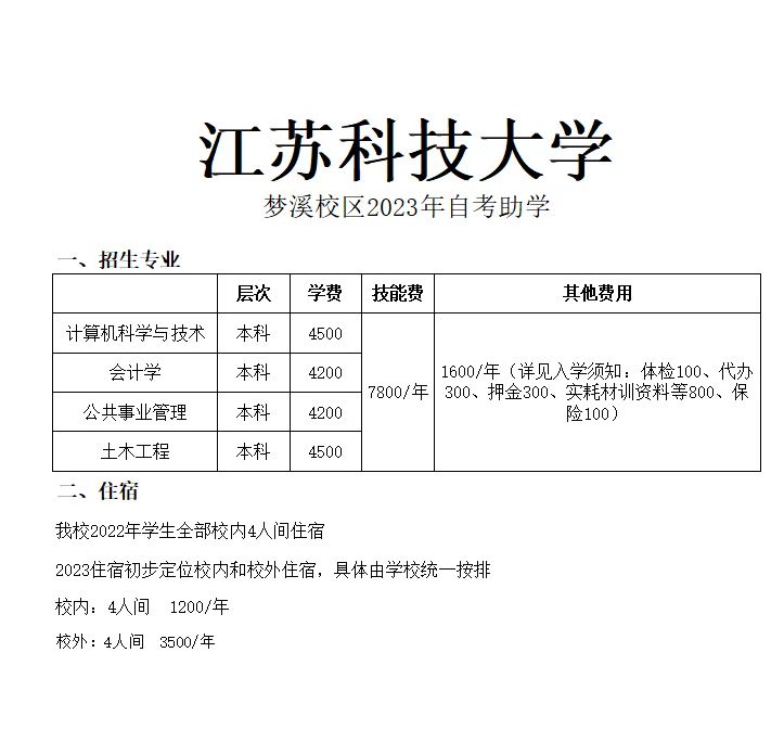 江苏科技大学专接本开设专业:会计、计算机科学与技术、公共事业管理、土木工程