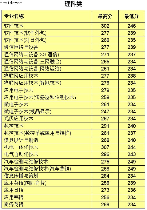 2014年无锡科技职业学院录取分数线