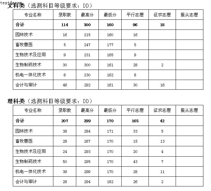 目前,学校占地615亩,建筑面积21万平方米。现有教职工335人,专任教师260人,其中副教授以上高级职称74人,博士、硕士研究生137人,“双师型”教师123人。建有生物技术、生物制药、园艺园林、动物医院、信息机电等30个实训中心,200多个校外实训基地,专业设备总值4300万元,馆藏图书25万册。