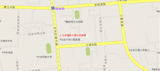 ·乘坐机场巴士中关村路线在中关村下车,打车走中关村南大街向南4公里(魏公村********民族大学路口掉头,此路是丁字路口),马路东侧,北京大学口腔医院北50米北京国际大厦(大厦外墙为浅黄色)